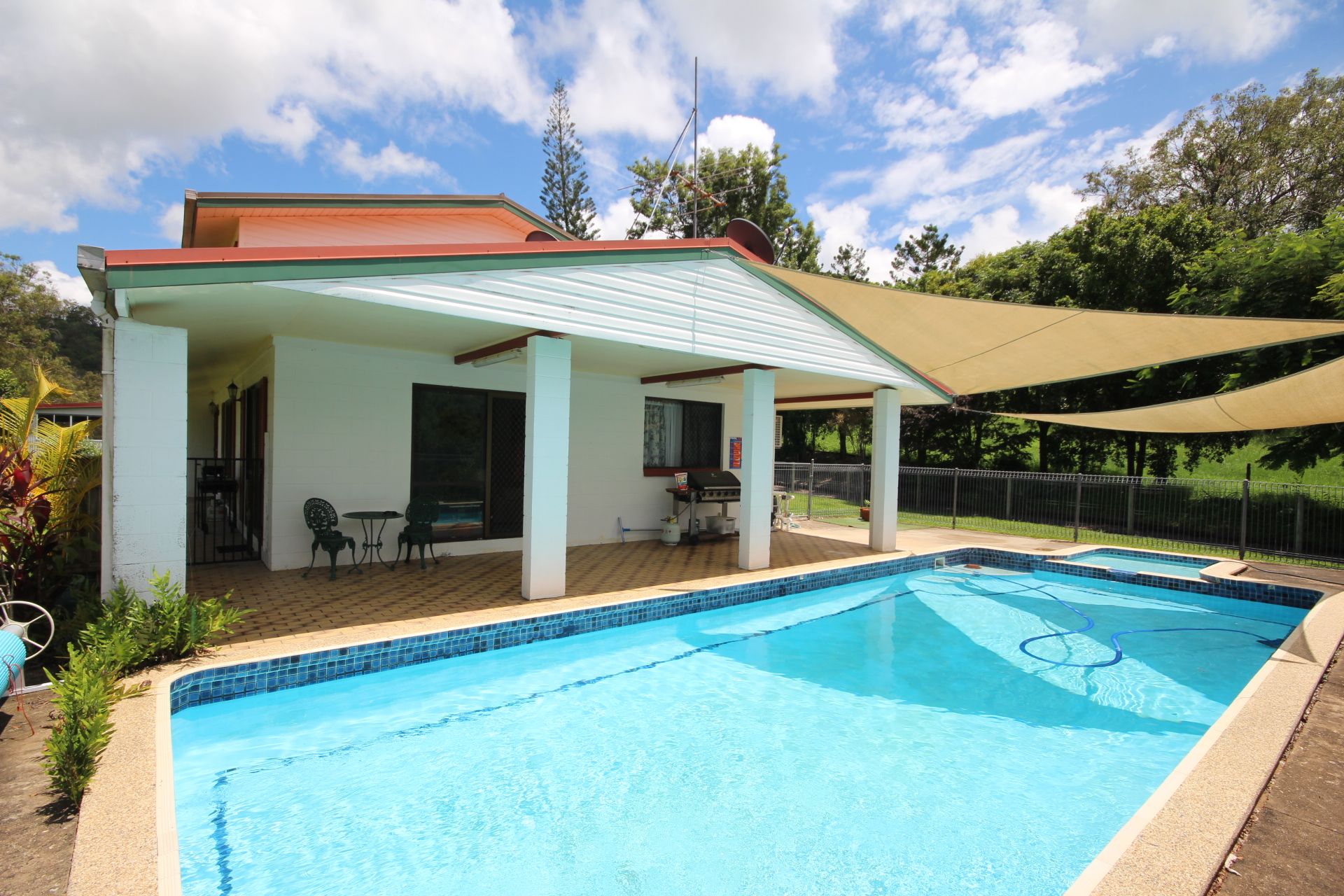The home consists of 4 bedrooms one with walk in robe. There are also two living areas and dining room, a great large timber kitchen with gas cook top. There are two bathrooms, split system air conditioners and fantastic sparkling in ground pool.