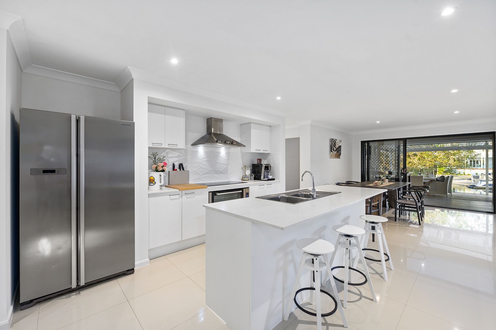 Beautifully appointed, it features generous proportions offering a stunning open plan living/dining area that transitions seamlessly to the protected outdoor alfresco area, overlooking the water. A gourmet kitchen is equipped with European appliances, stone bench-top, induction cook top, Breakfast bar, vast storage and pantry space.