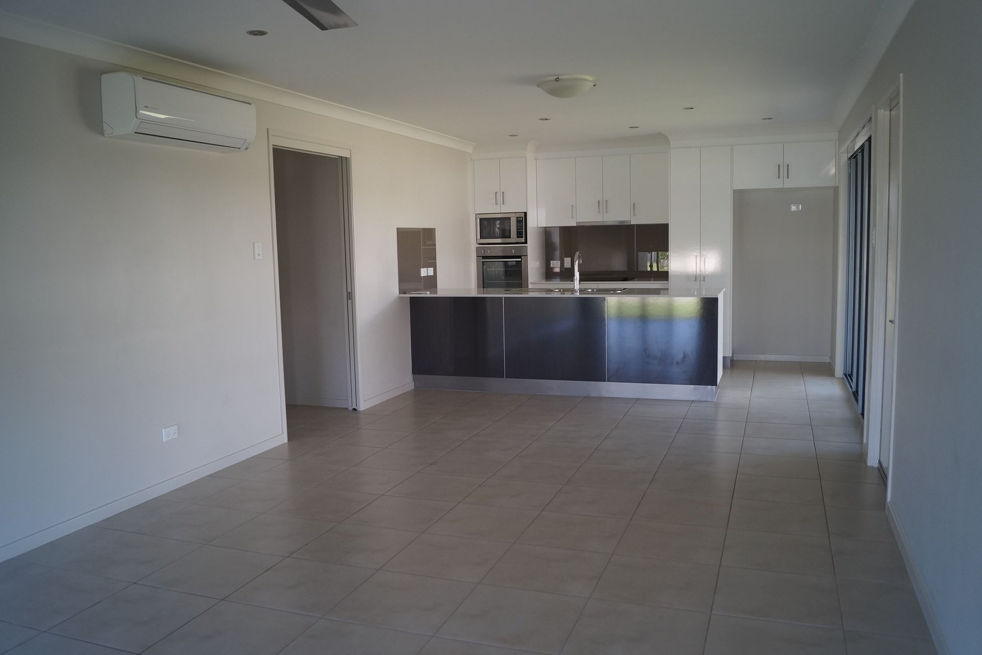 - Open plan ,tiled living area