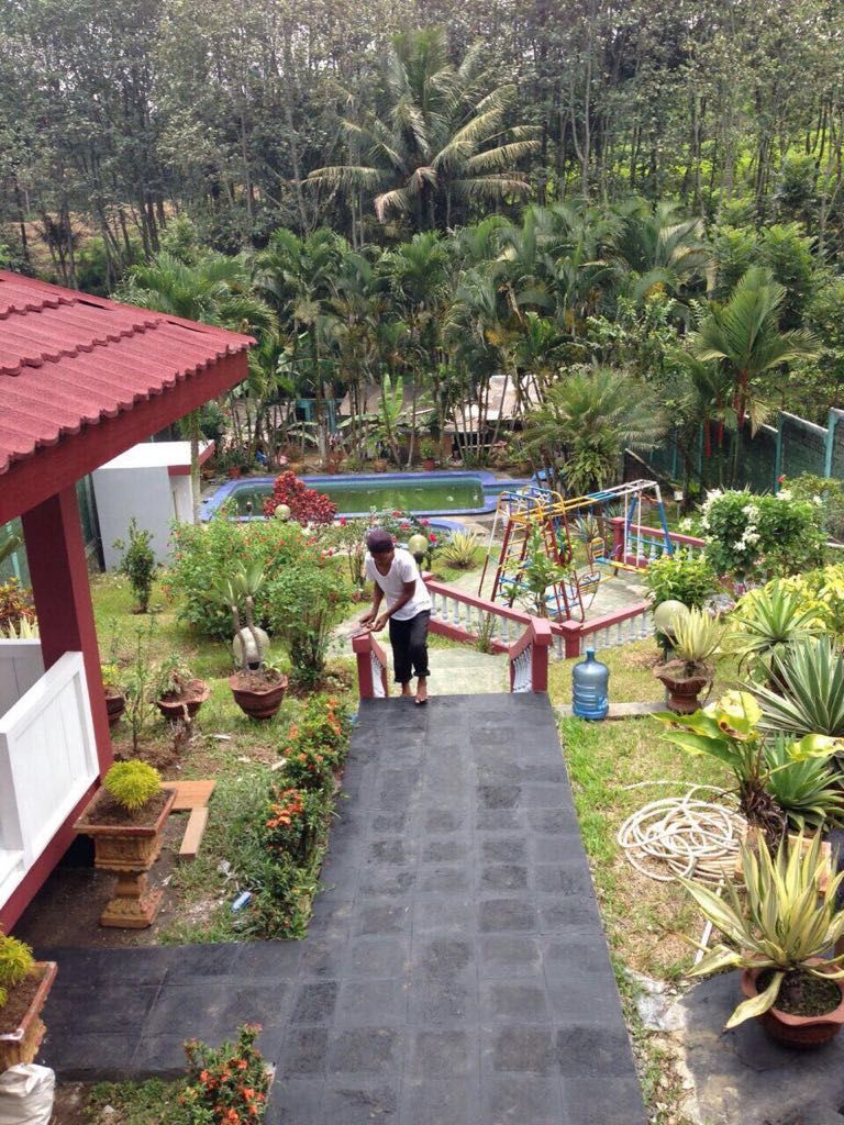 Villa ini sangat asri dengan adanya taman dihalaman depan dan belakang serta kolam renang dan area bermain untuk anak anak.