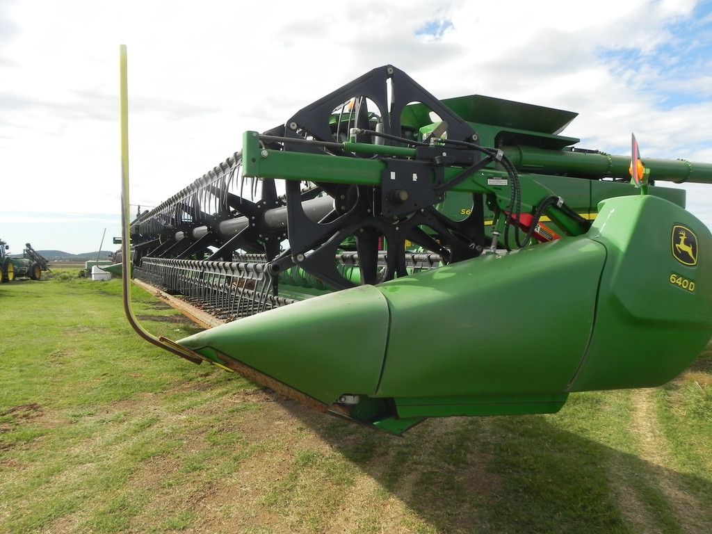 •JDeere S670 header 2016 1170 rotor & 1510 eng hrs, auto steer, ledlights, 2 way, Contour Master feeder house, 800/70R38 Firestone & 600/70R28 tyres Powercast Chopper, HRU auger