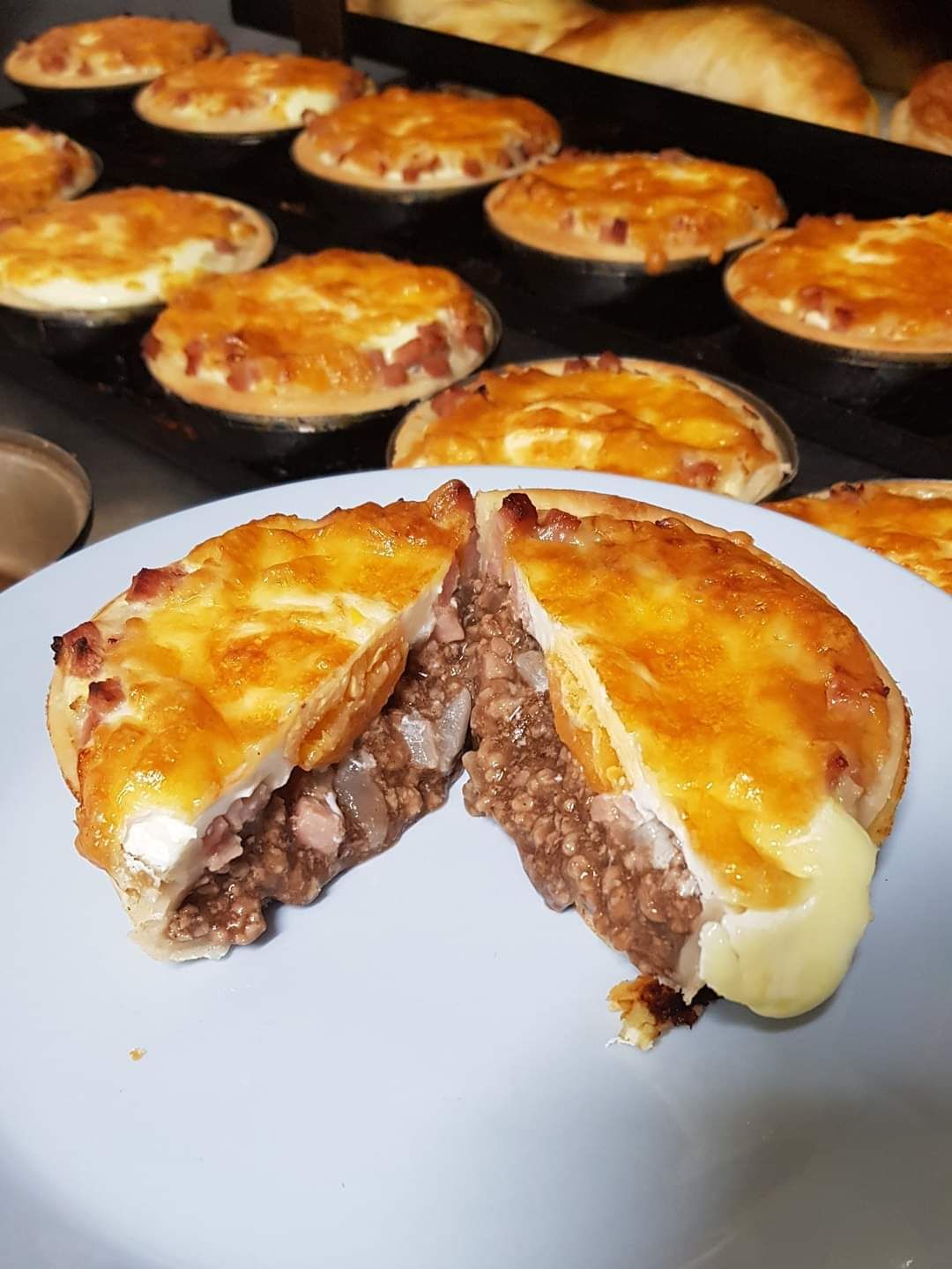 The goods are baked on site and include a large line of bread, pies, pasties and pastries along with general bakery goods including cakes, buns, vanilla slice, donuts, and a variety of slices all sold in the shop.