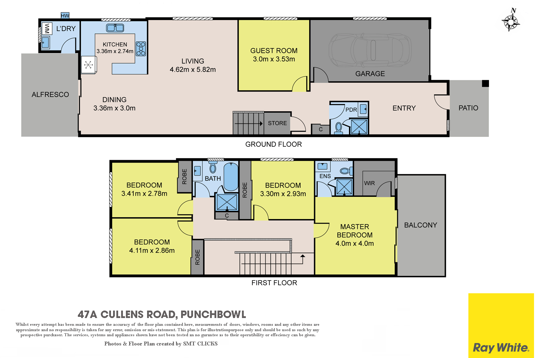 -4 large bedrooms upstairs all with built-in robes & master with en-suite + huge walk-in robe, plus an additional guest room downstairs
