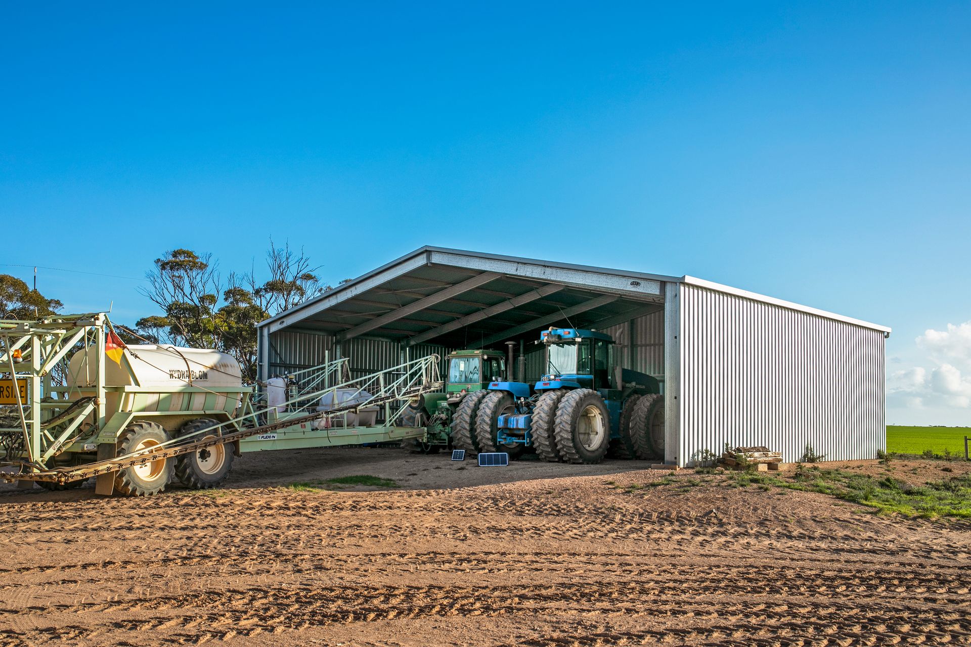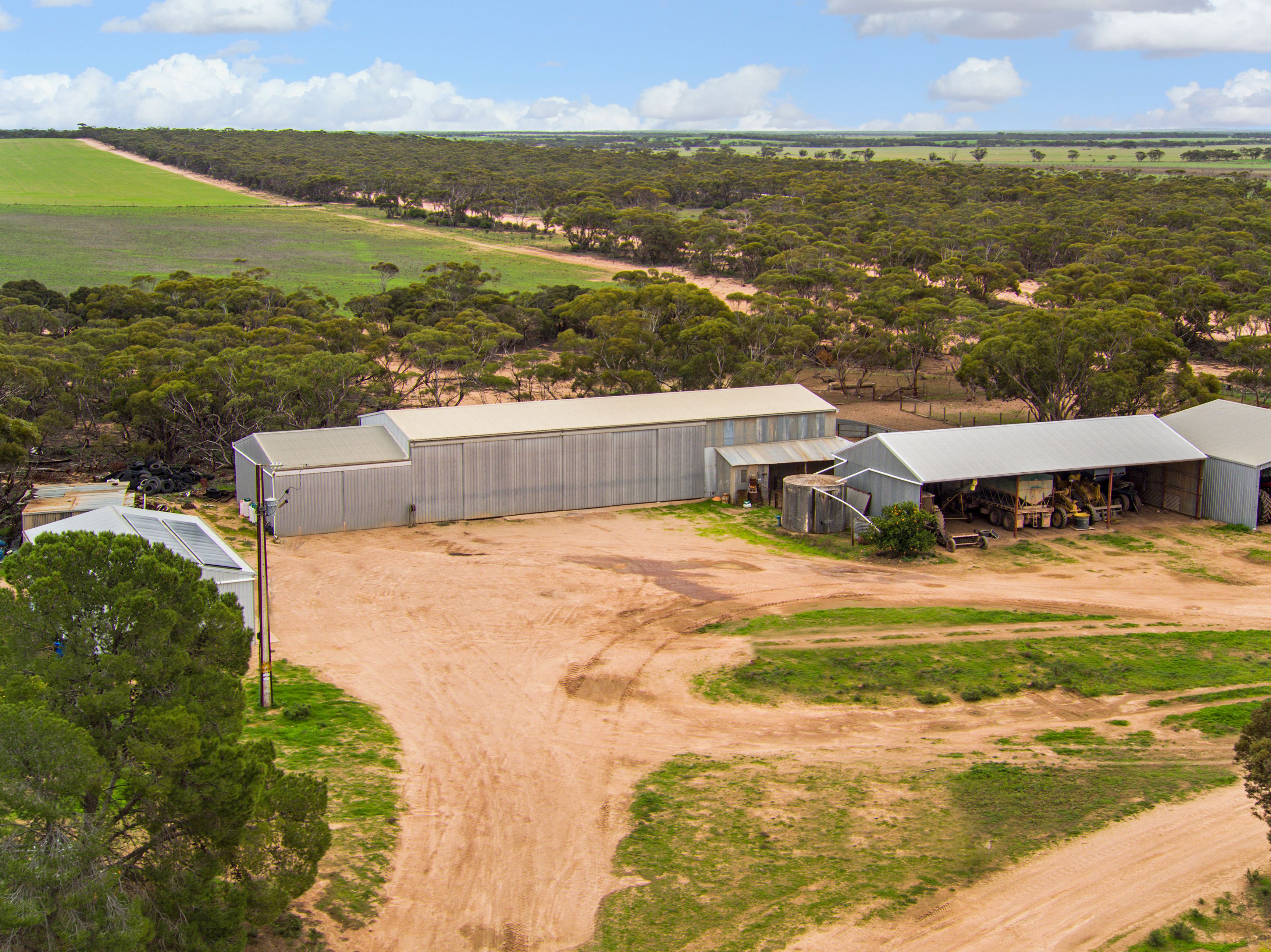 - 3 x implement sheds, aircraft hanger, super shed, workshop, 9x seed silos