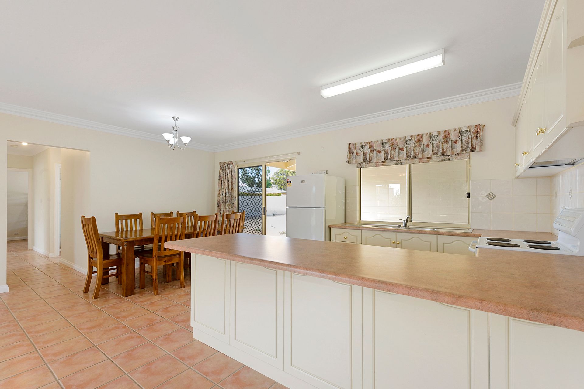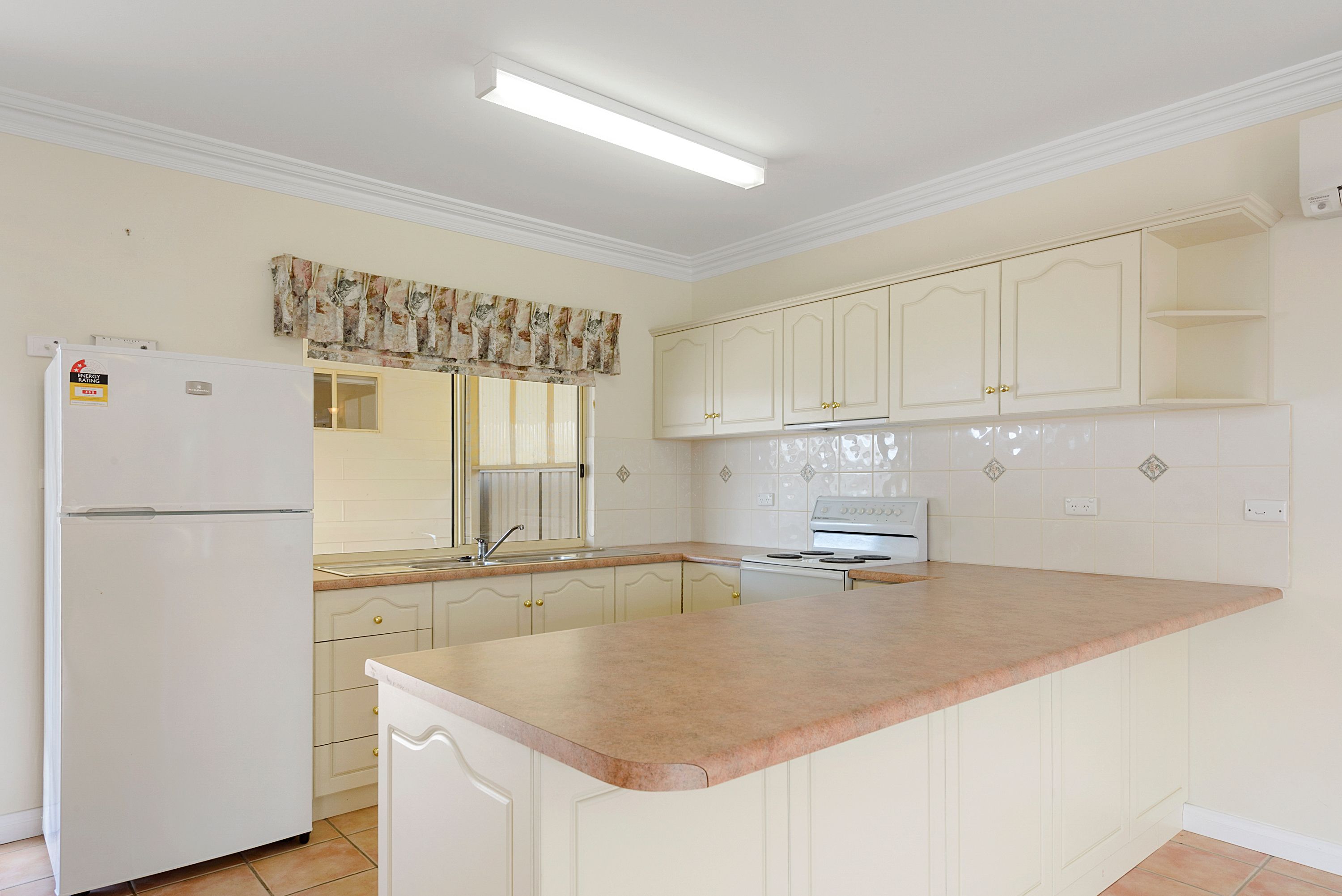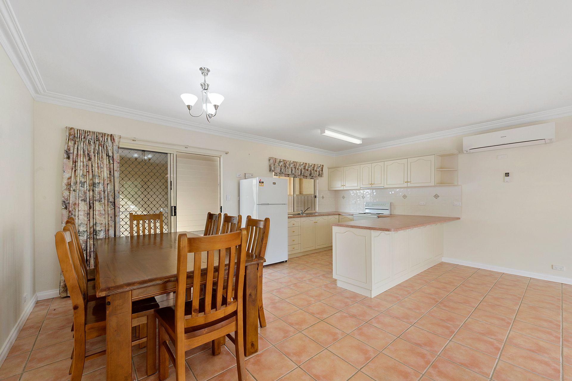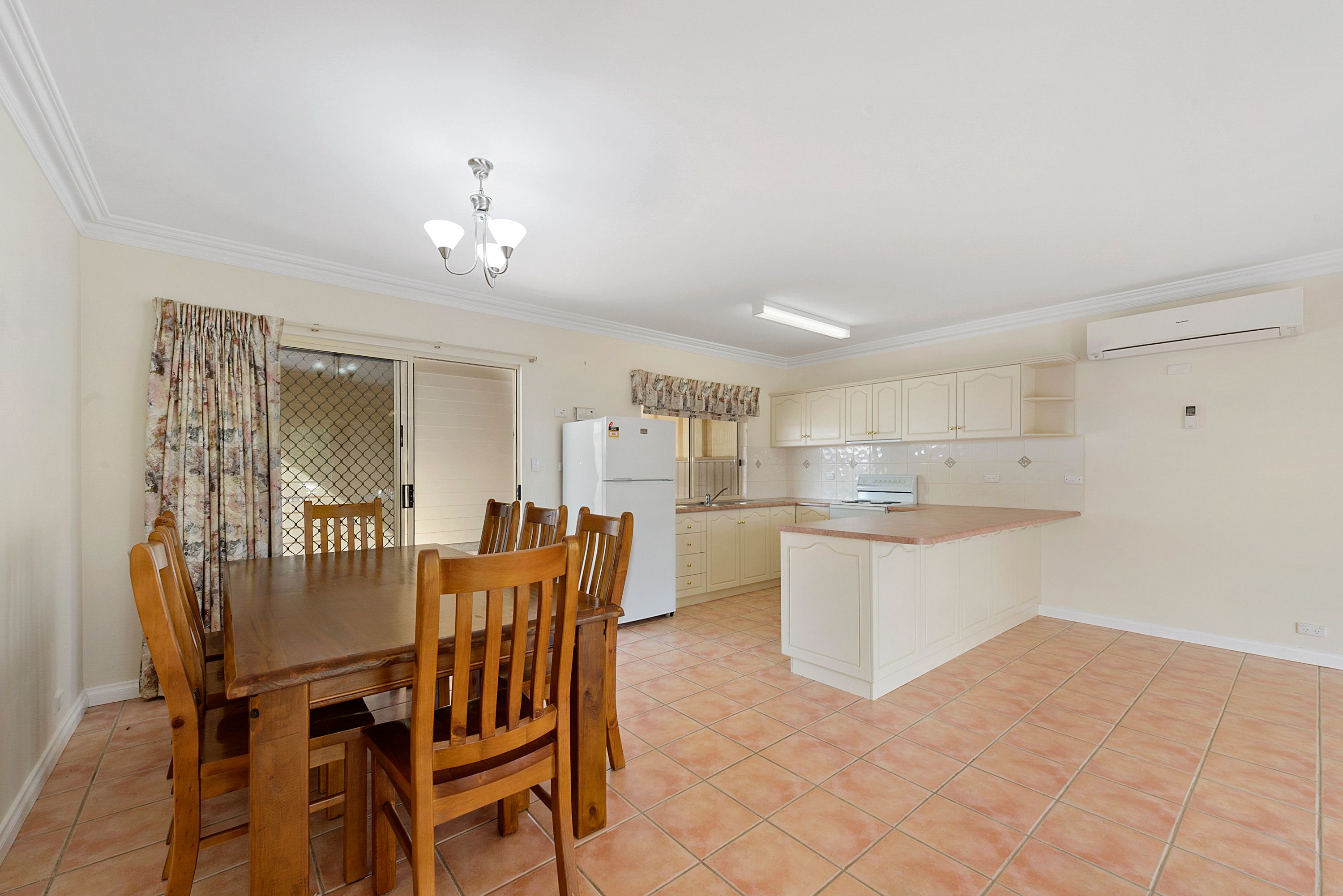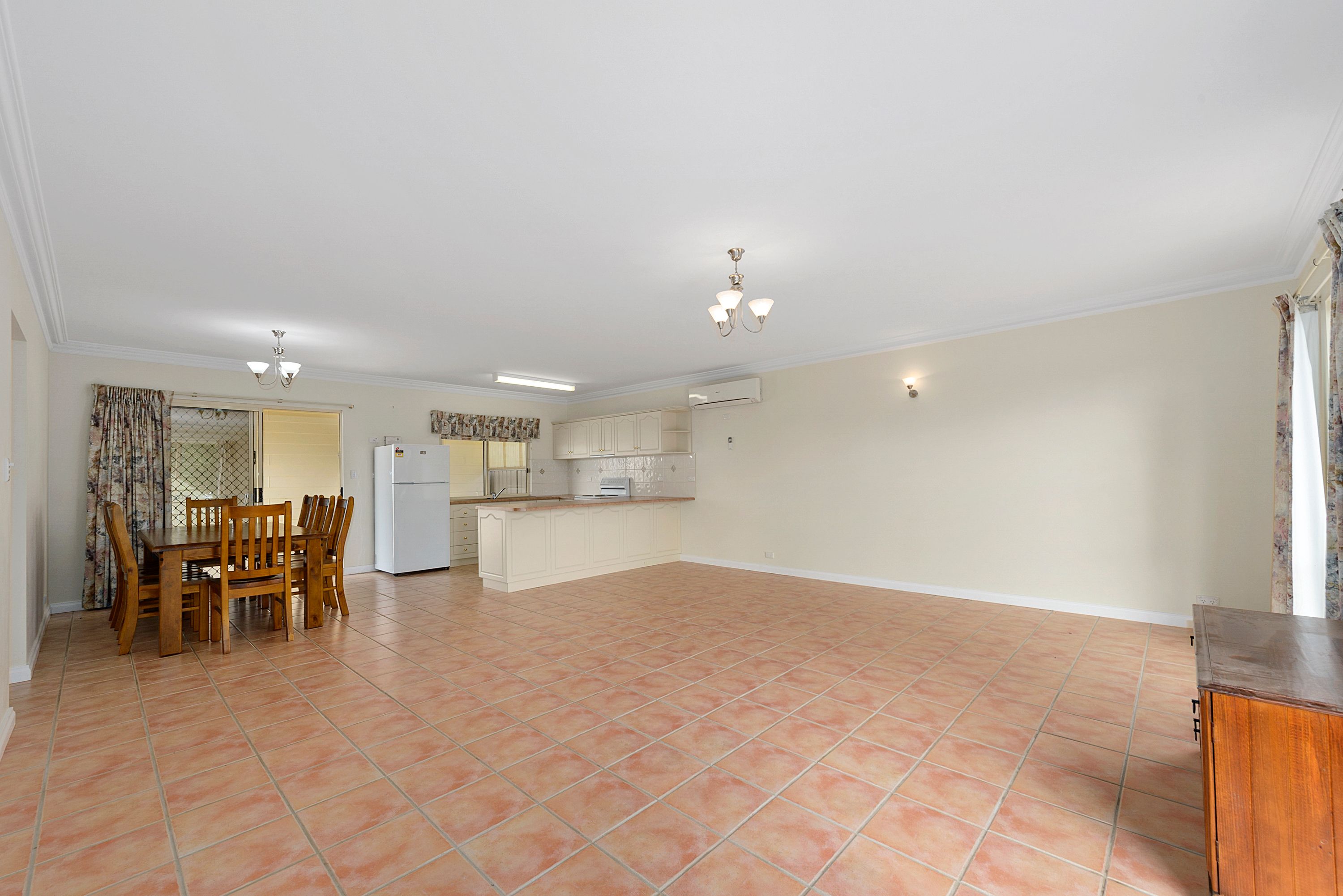 Very spacious open plan dining/living and kitchen with reverse cycle split system air conditioning for year round comfort.