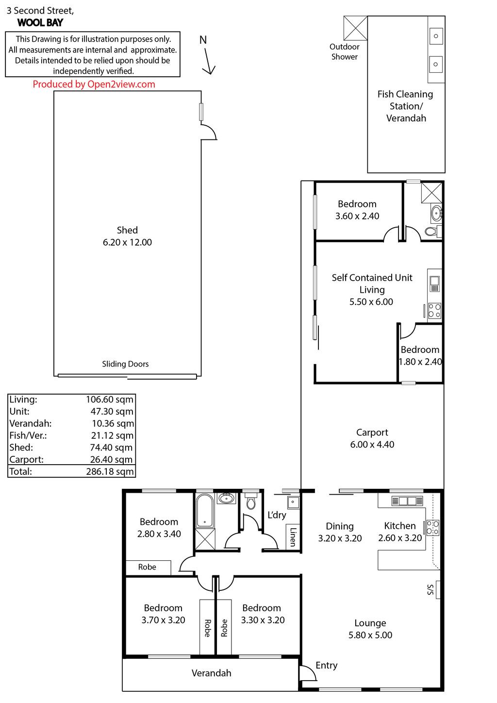 Separate self-contained Unit attached to the rear verandah with kitchenette, 1 double bedroom and 1 single bedroom/storage room, combination bathroom/laundry/toilet and wall reverse cycle air conditioning.