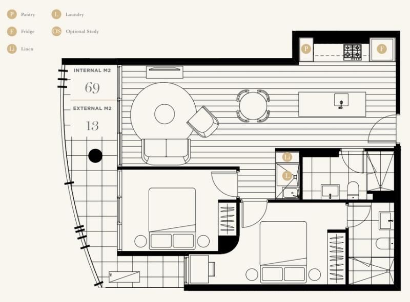 This spacious two bedroom apartment is beautifully designed with modern open plan layout, stone bench tops, quality European appliances, timber flooring in the living areas and floor to ceiling windows that open onto a private courtyard.