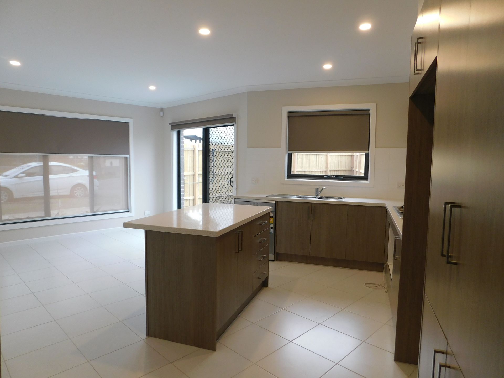 - Large open kitchen/living area leading to outside garden.