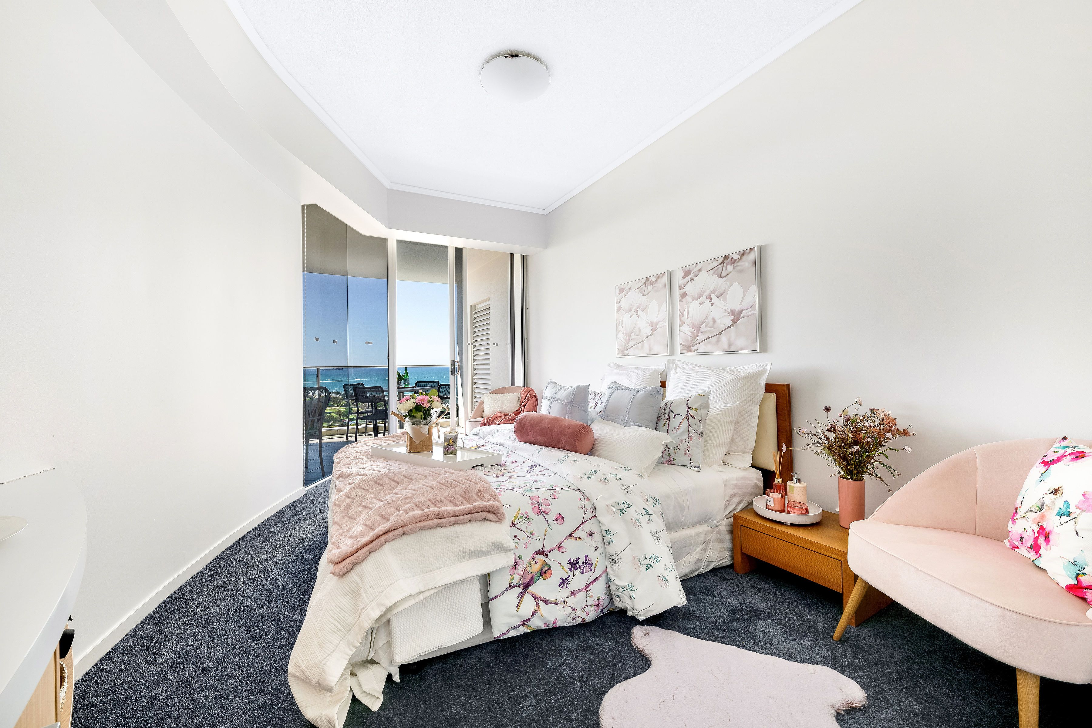 The interior design will impress throughout the apartment where open-plan living spills out onto the wide balcony taking in the views over the water. A wall of glass and a sliding door allows natural light to fill the space, and encapsulates the water on the horizon from all angles in this open-plan living area.