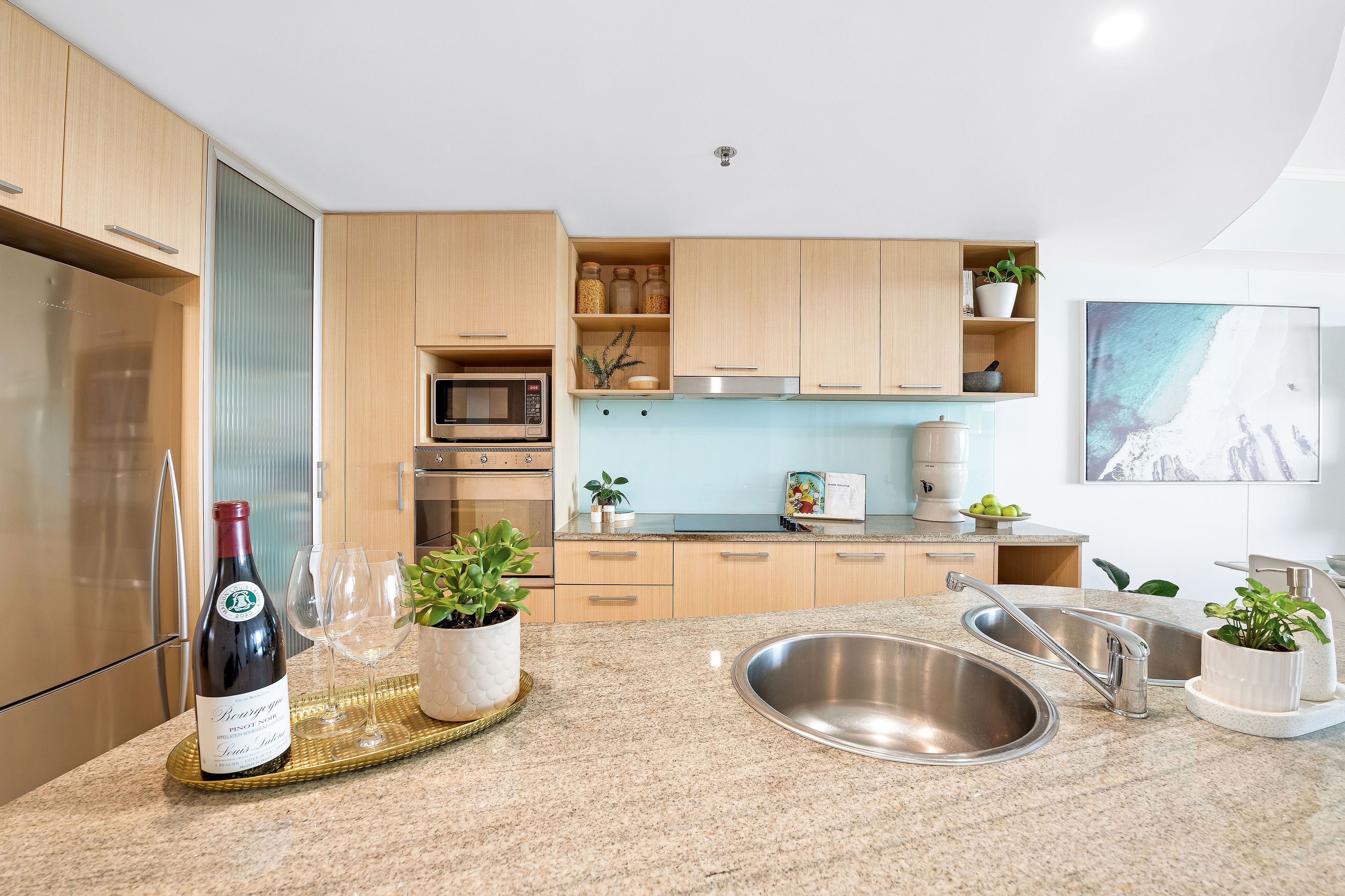 Create a feast in the gourmet kitchen complete with European appliances, glass splash back, stone bench top and so much storage. You will want to entertain and let family and friends appreciate your beach backdrop.