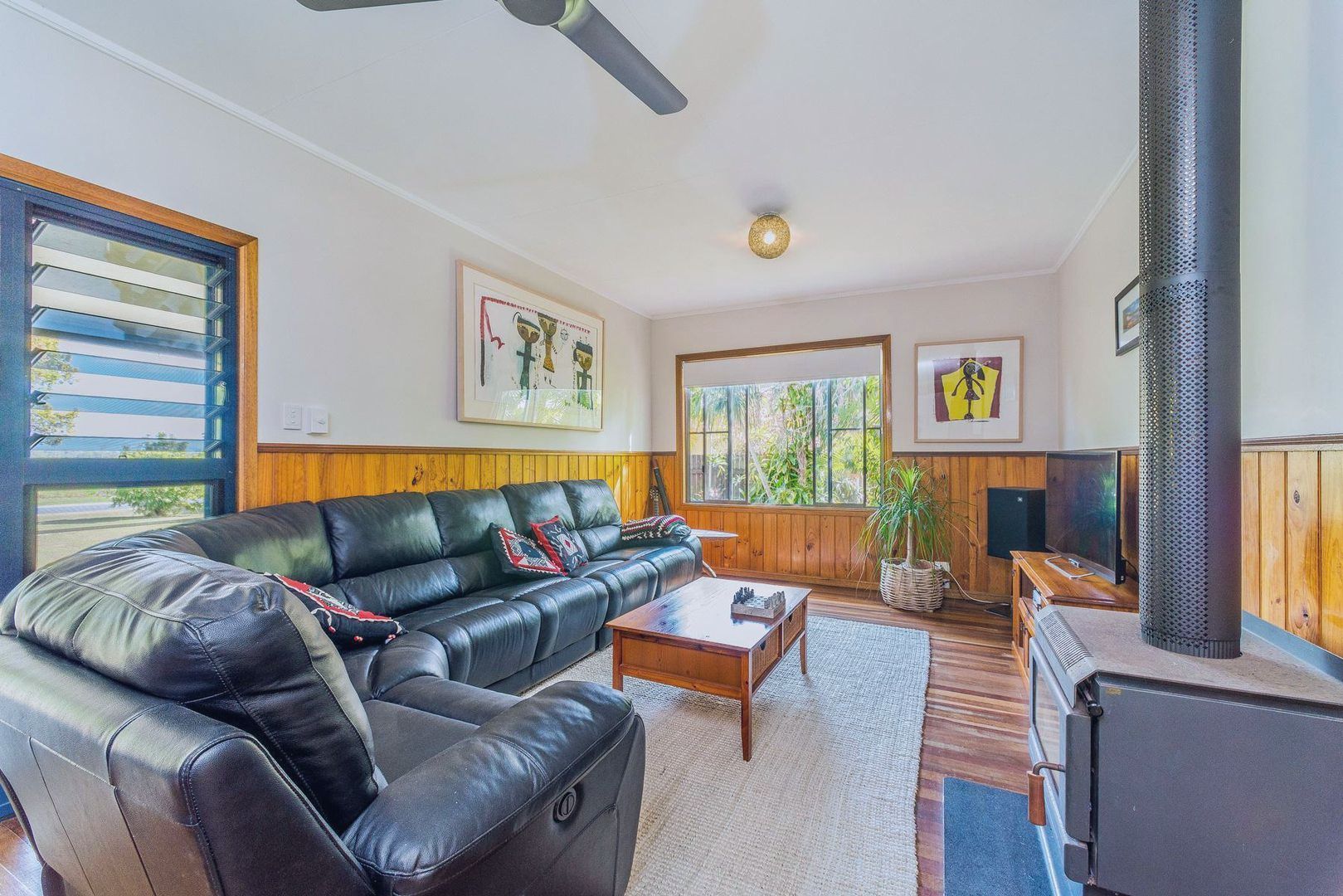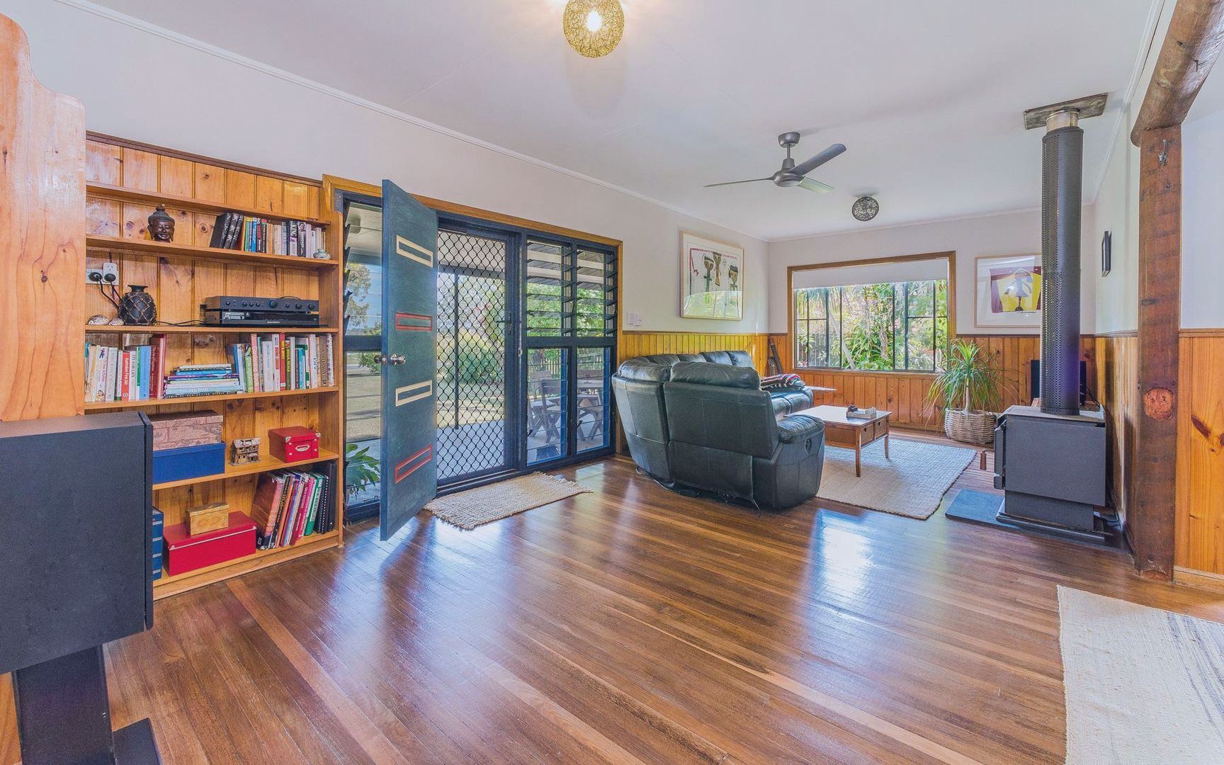 • combustion fireplace to the large lounge room, with timber floorboards.