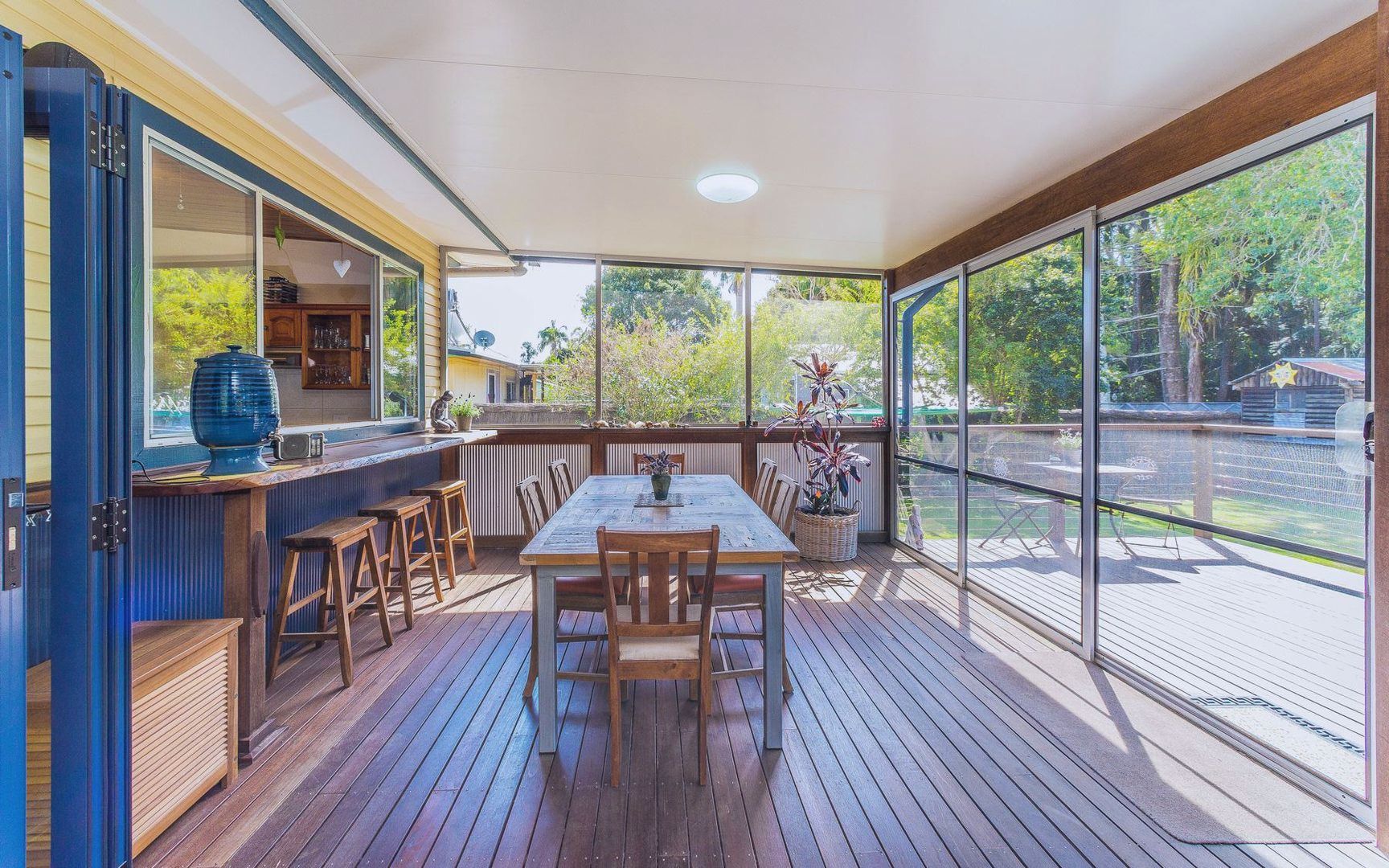 • huge fully fly-screened rear patio, with bi-fold doors off the kitchen.