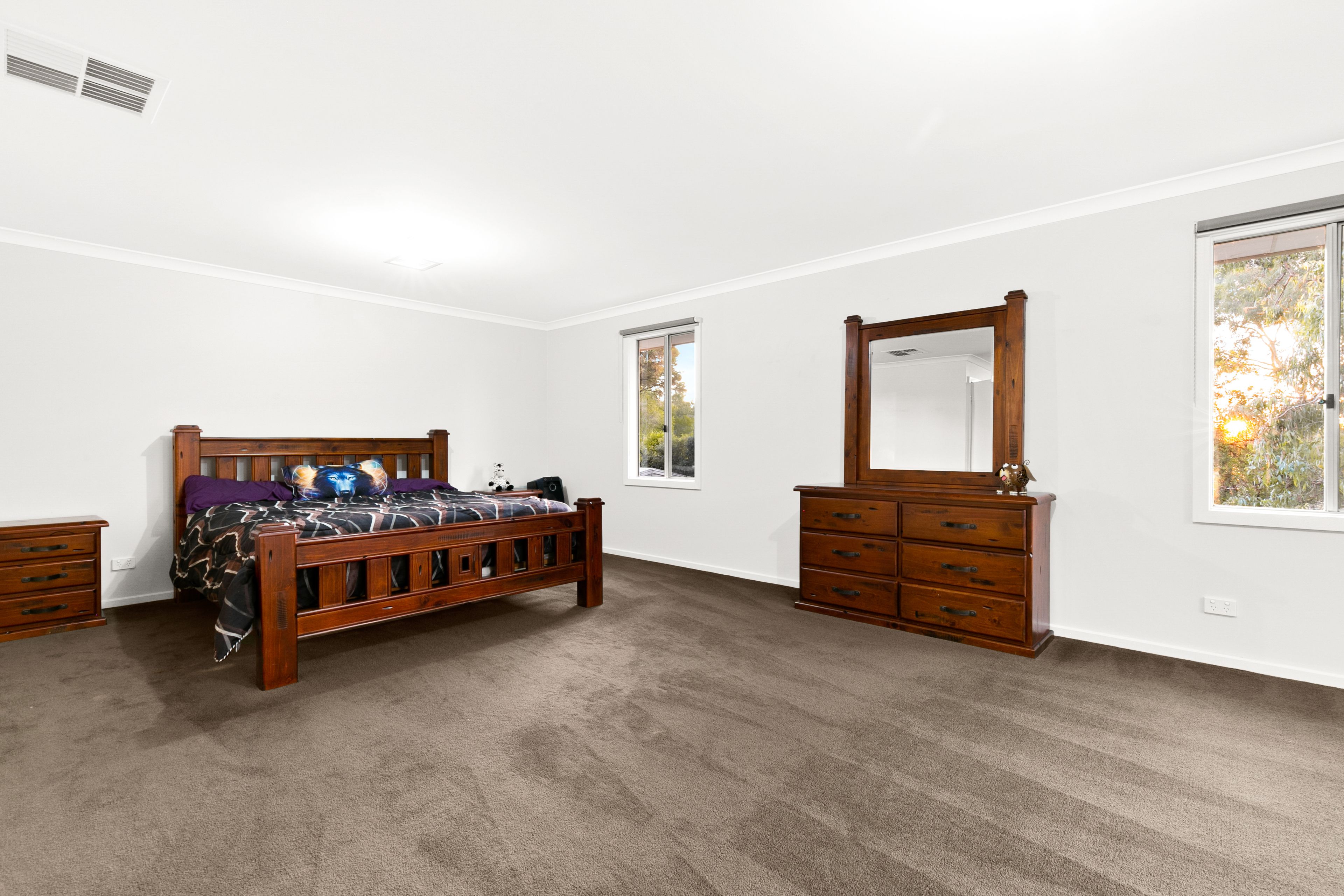 Features include: gas ducted heating, evaporative cooling, ducted vacuuming stainless kitchen appliances, alfresco area, alarm system, two remote double garages one with internal access, remote control front gate, fully fenced and lightly landscaped gardens on a private 1.2 acre block.