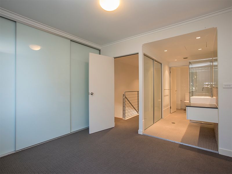 The main bathroom downstairs offers stylish fixtures and fittings, perfectly servicing the living area and second bedroom. The bedroom downstairs has a large built-in wardrobe and allows external access to a private courtyard. Upstairs comprises of the private master retreat with large built-in wardrobe and spacious ensuite bathroom with separate toilet. Lift access is available from the security car space for one car.
