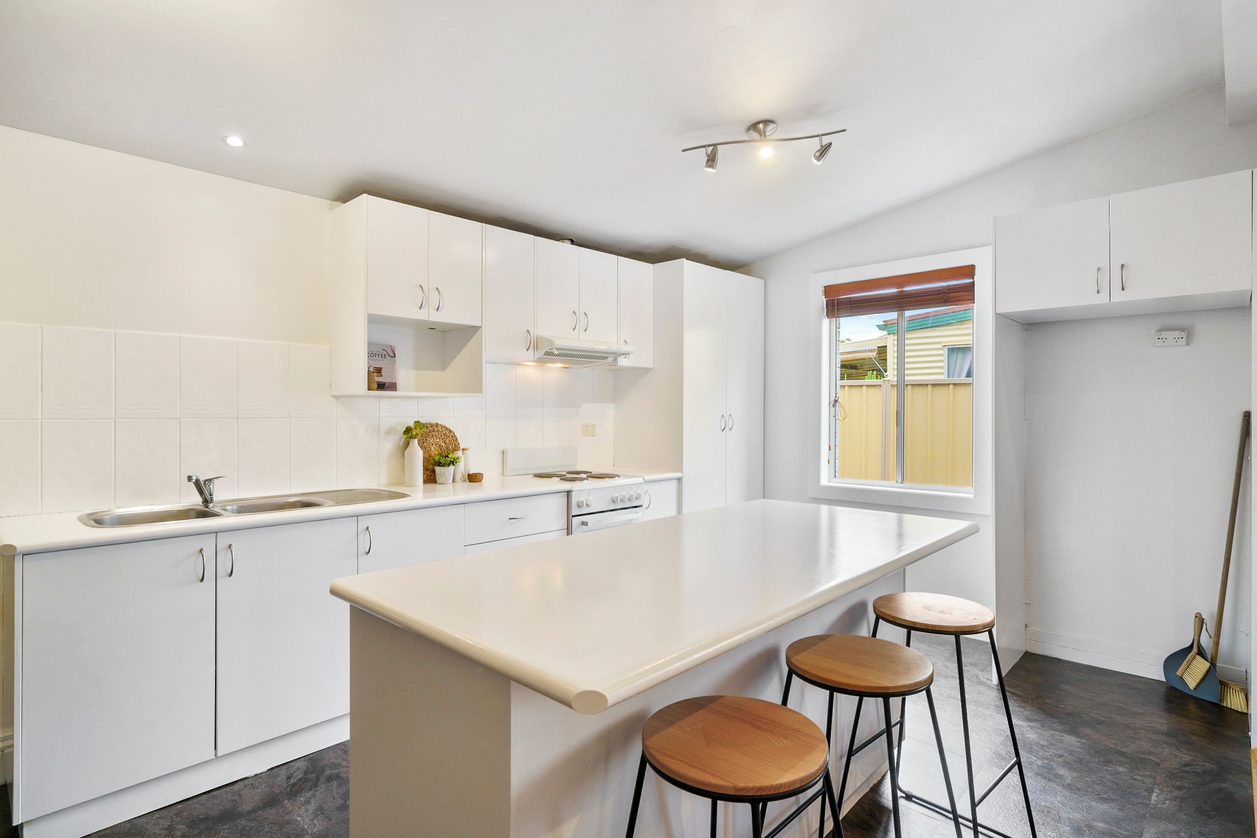 Beyond the spotless kitchen and dining area lies an immaculate laundry and bathroom, a large al fresco area and established cottage garden beds. The rear yard is fully fenced, and the front yard is tastefully landscaped. A huge workshop/garage with built in work benches, pot belly stove and fully connected to mains power is the perfect tinkering place, or at home studio.