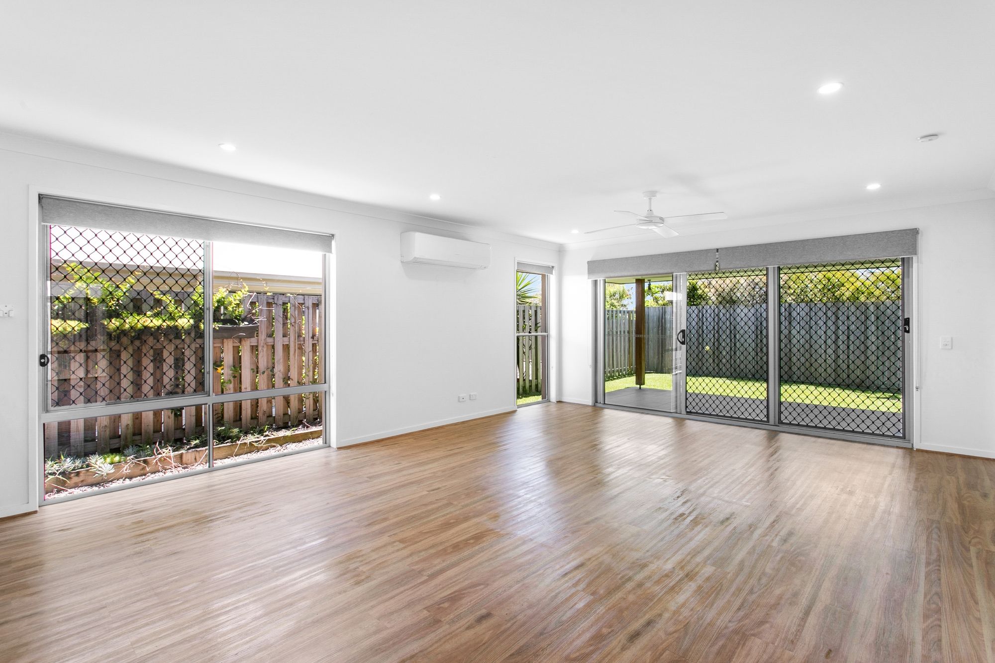 - Large lounge with a large AC split system and ceiling fan