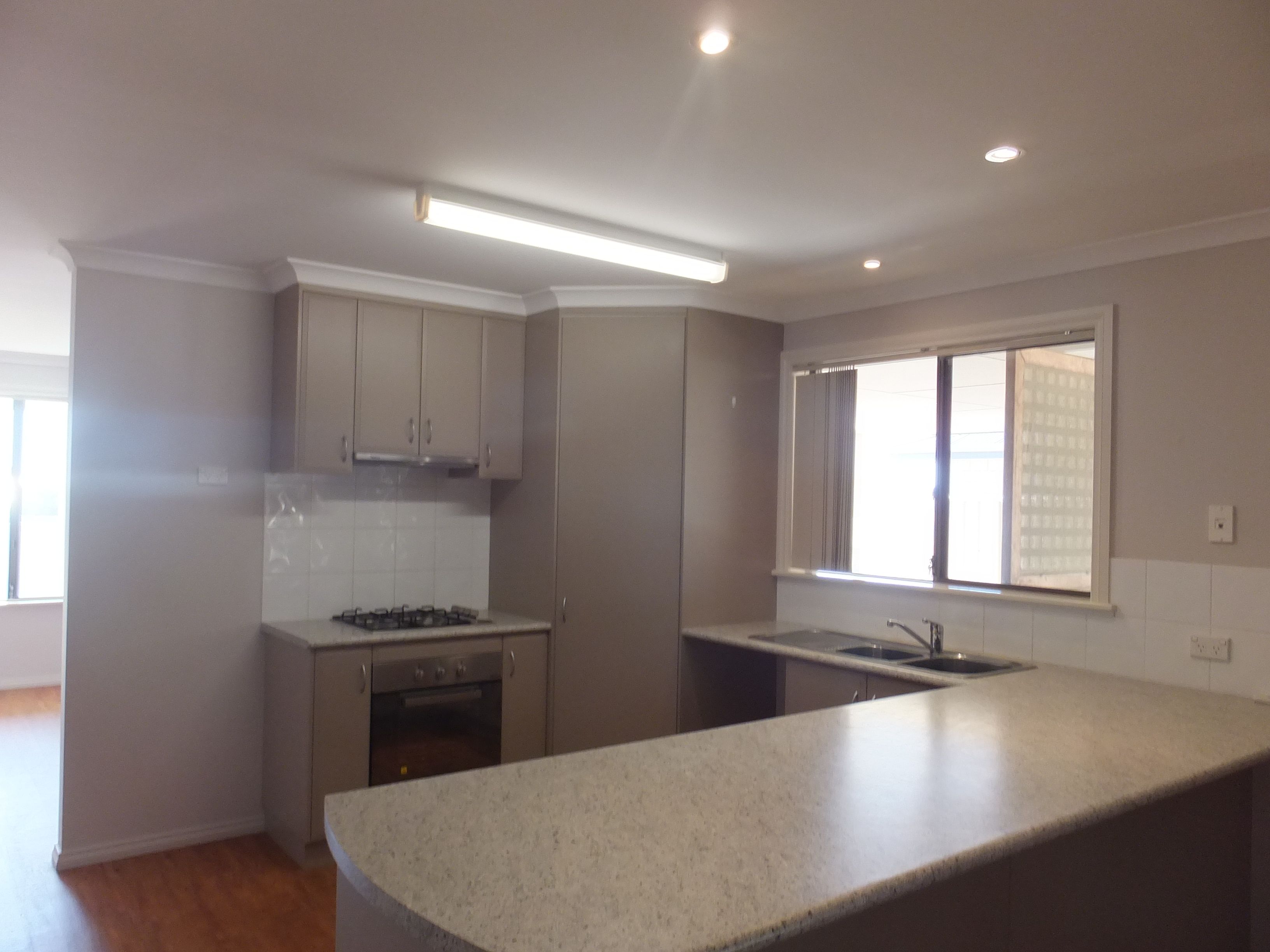 Front lounge room at entry followed by open plan kitchen and dining/family area with reverse cycle air con. This room opens up onto the undercover patio at the side of the house.