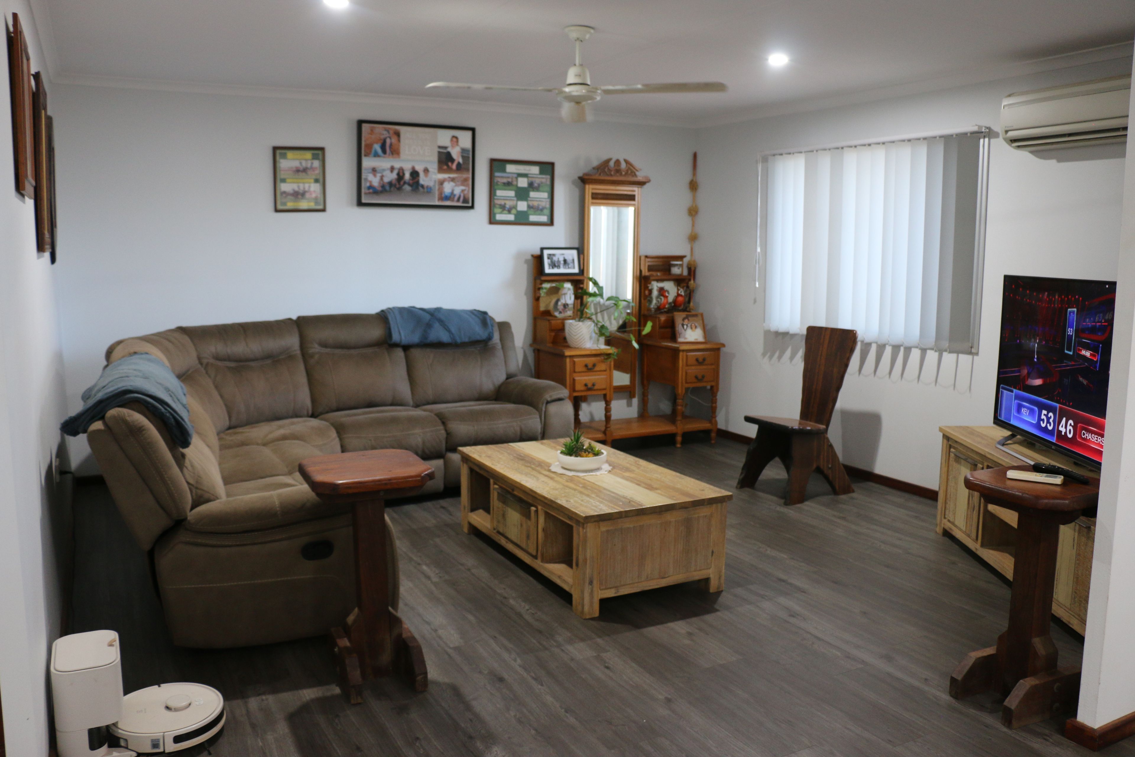 As you wander through the home, you'll discover abundant internal storage and three generously sized bedrooms, each featuring built-in robes, a ceiling fan, and air-conditioning. The bathroom, complete with a luxurious bathtub, promises quiet moments of reflection and relaxation after a long day.