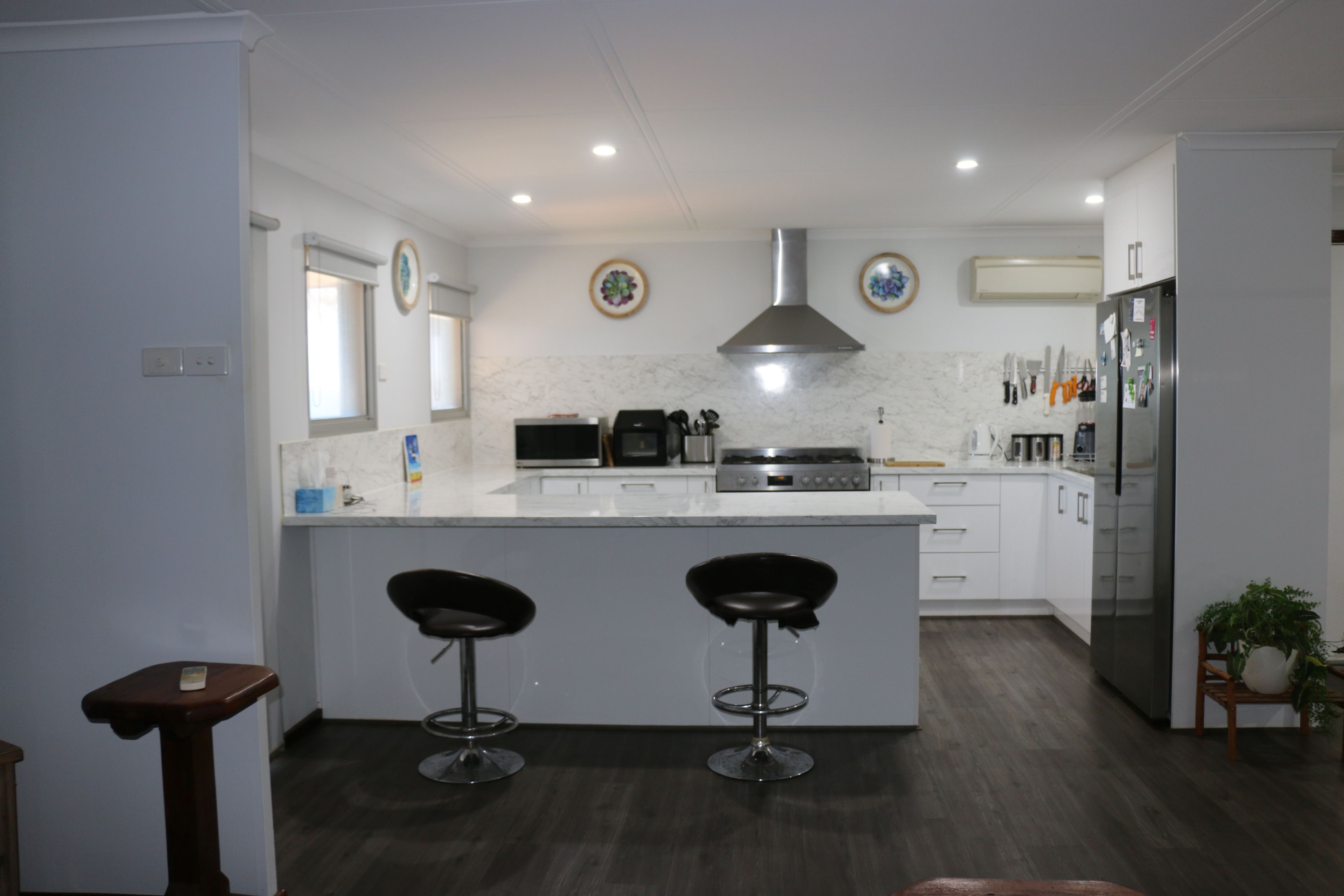 Sip your coffee at the sleek kitchen breakfast bar, where each sunrise streams through the windows in a display of natural wonder. The spacious kitchen boasts heaps of bench and cupboard space, a 5-burner gas stove, and an electric oven-all seamlessly opening onto an expansive open-plan living and dining area.
