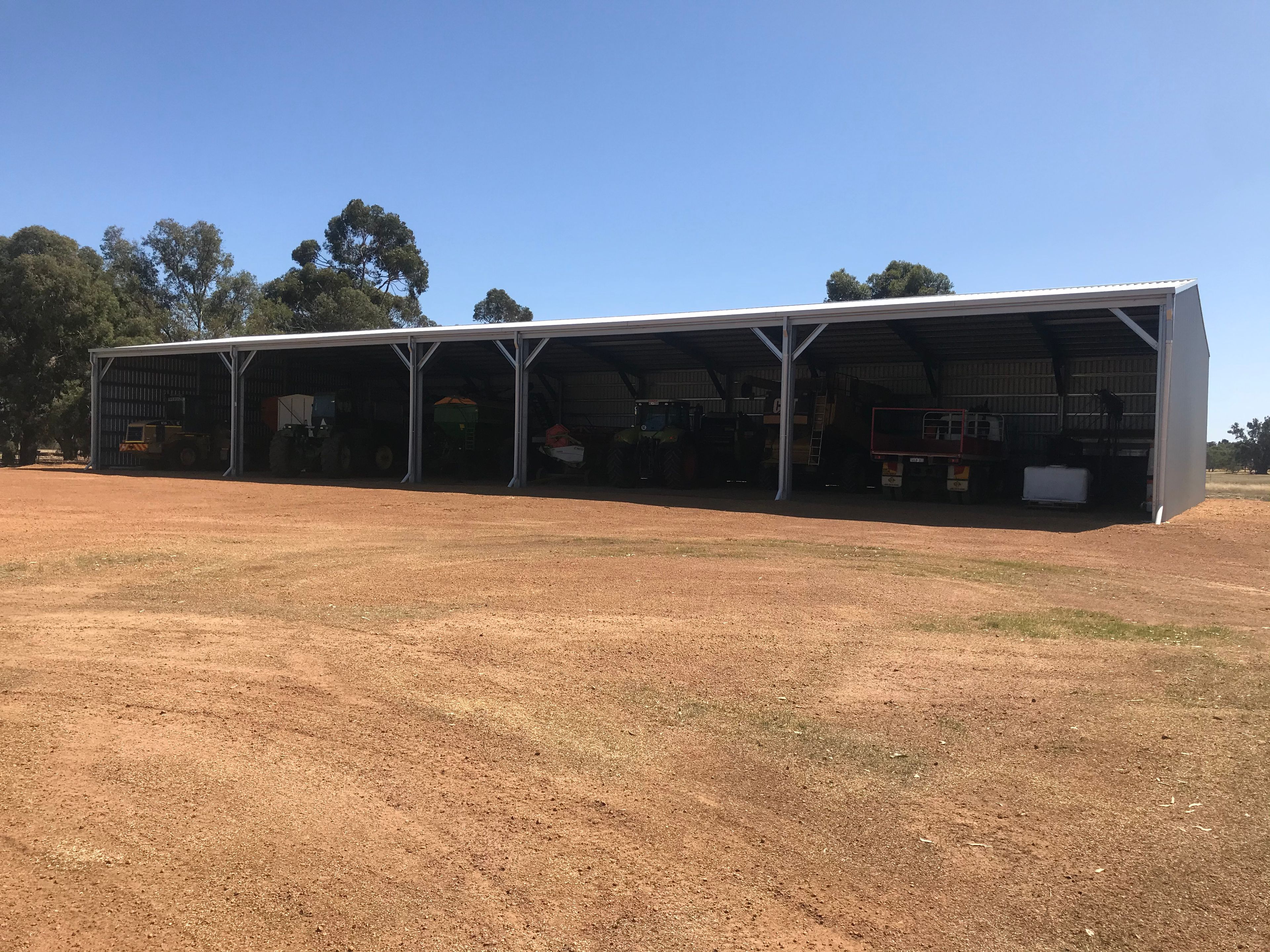 32m x 16m near new steel framed machinery shed.