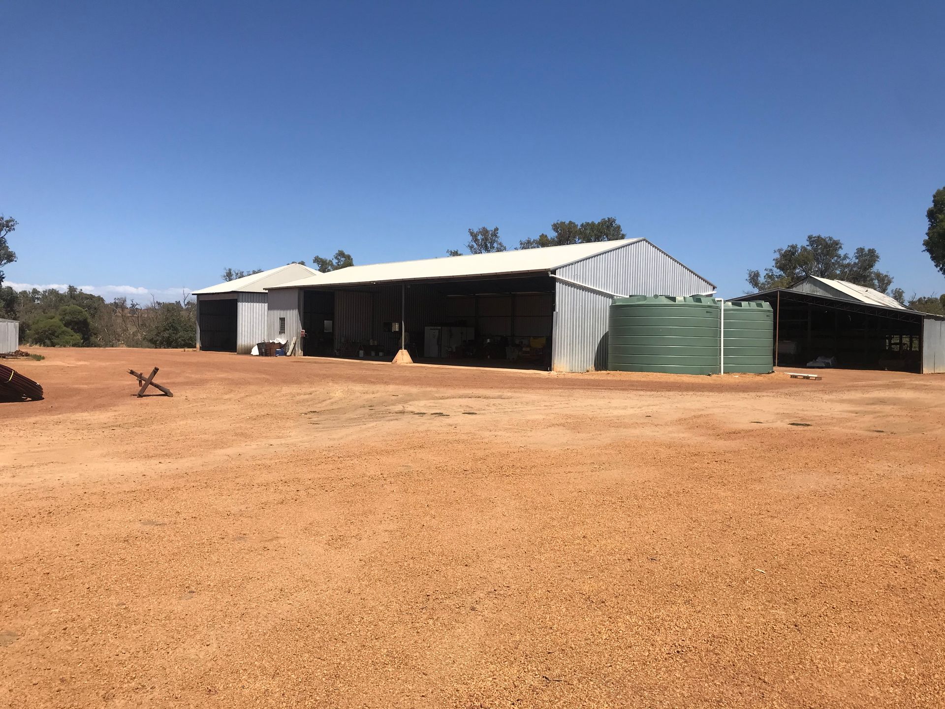 Out buildings include a new large 5 stand raised board shearing shed which is fully enclosed with sliding doors and sealed floor wool room, it adjoins a fully covered set of steel sheep yards. There is a second set of steel sheep yards located nearby to the shearing shed.